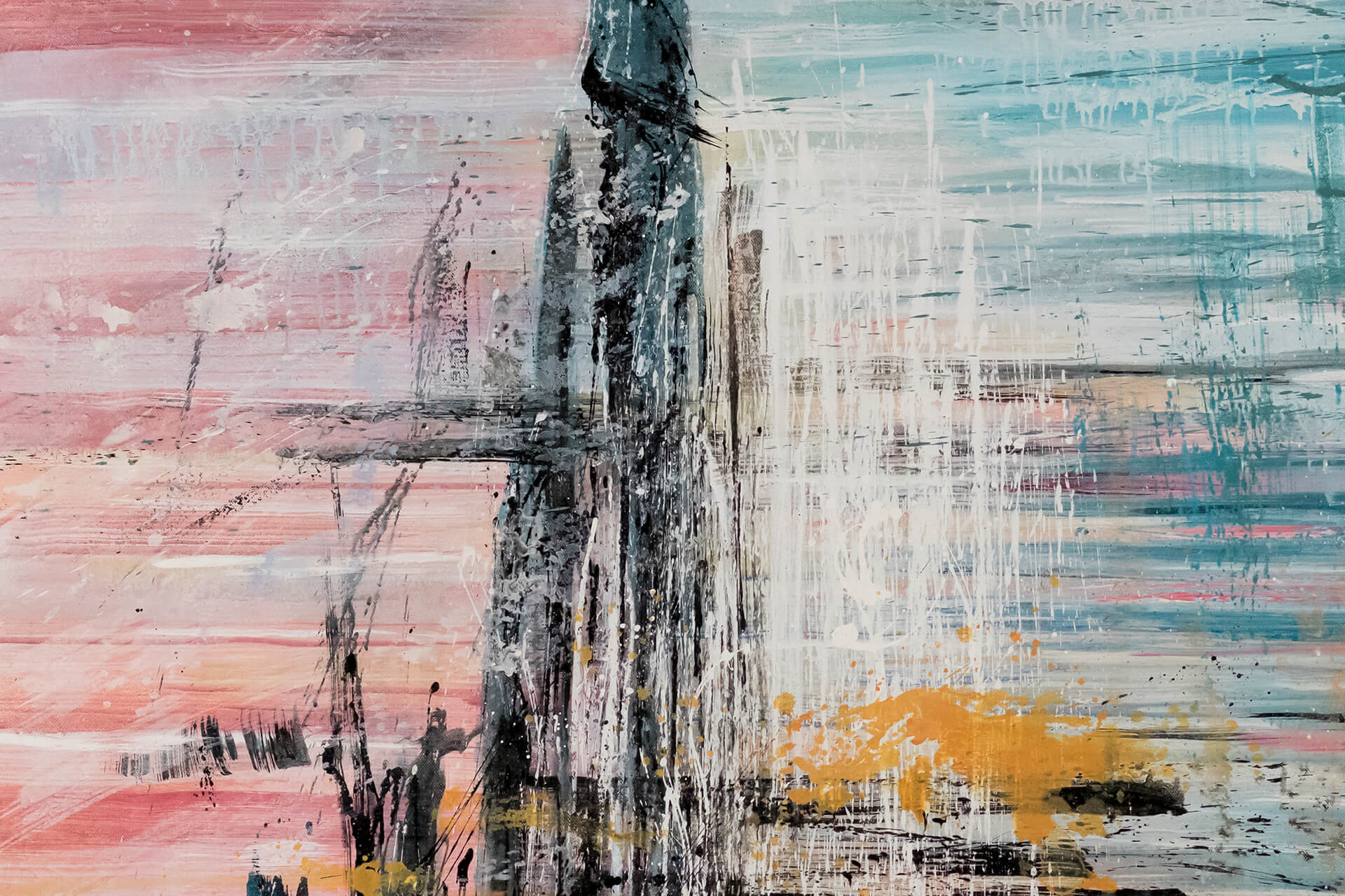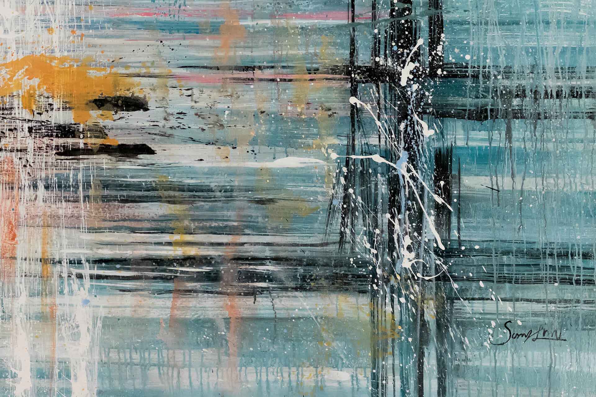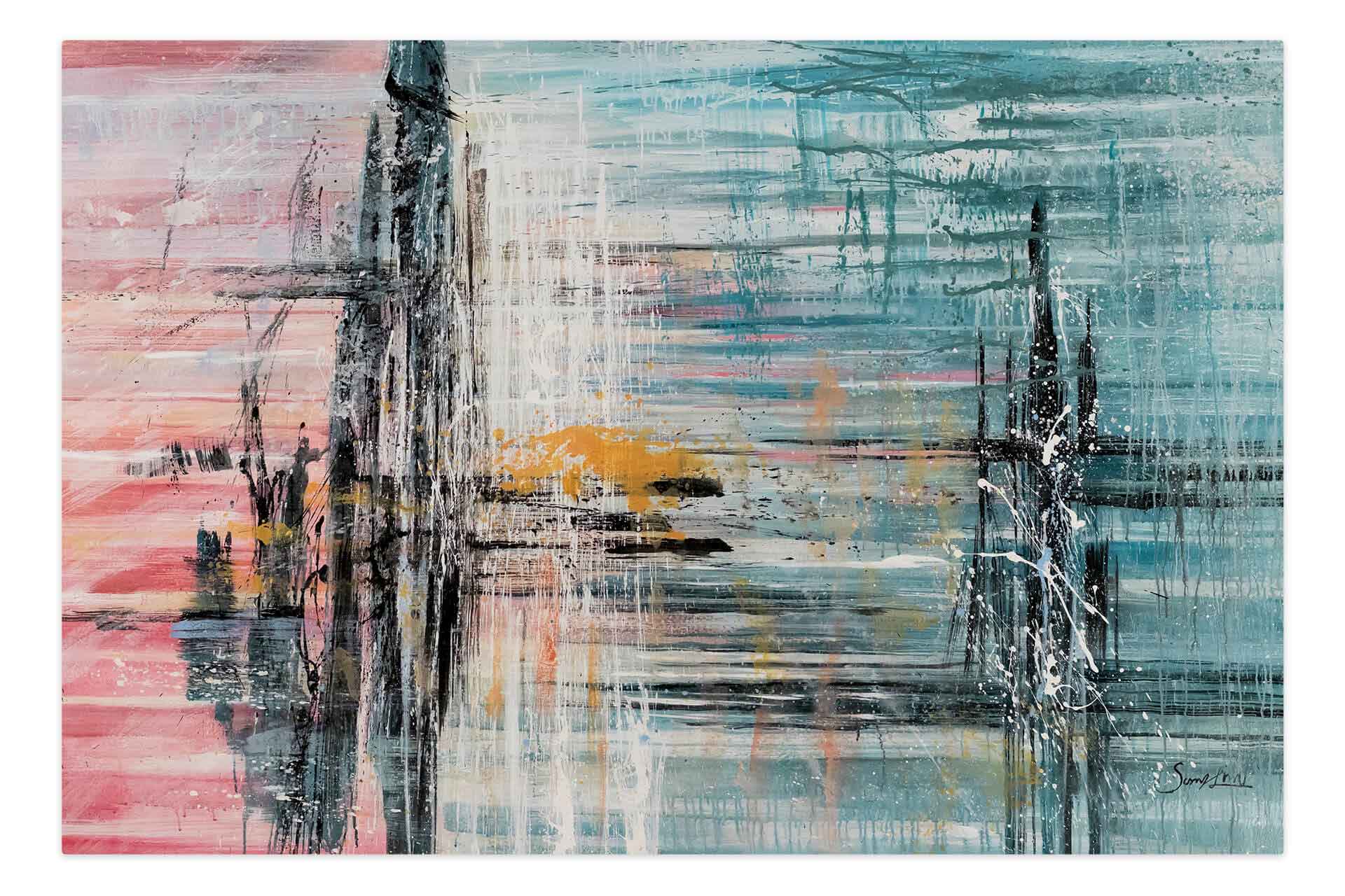 Una 'Magia silenziosa' pervade il grande dipinto ad olio dell'artista Sony Lim, che la immortala in pennellate dipinte a mano. La superficie a rilievo del capolavoro unico brilla in blu e rossa, creando un quadro d'insieme sensibile. La grinta fortemente astratta seduce con un linguaggio pittorico che porta all'ispirazione.