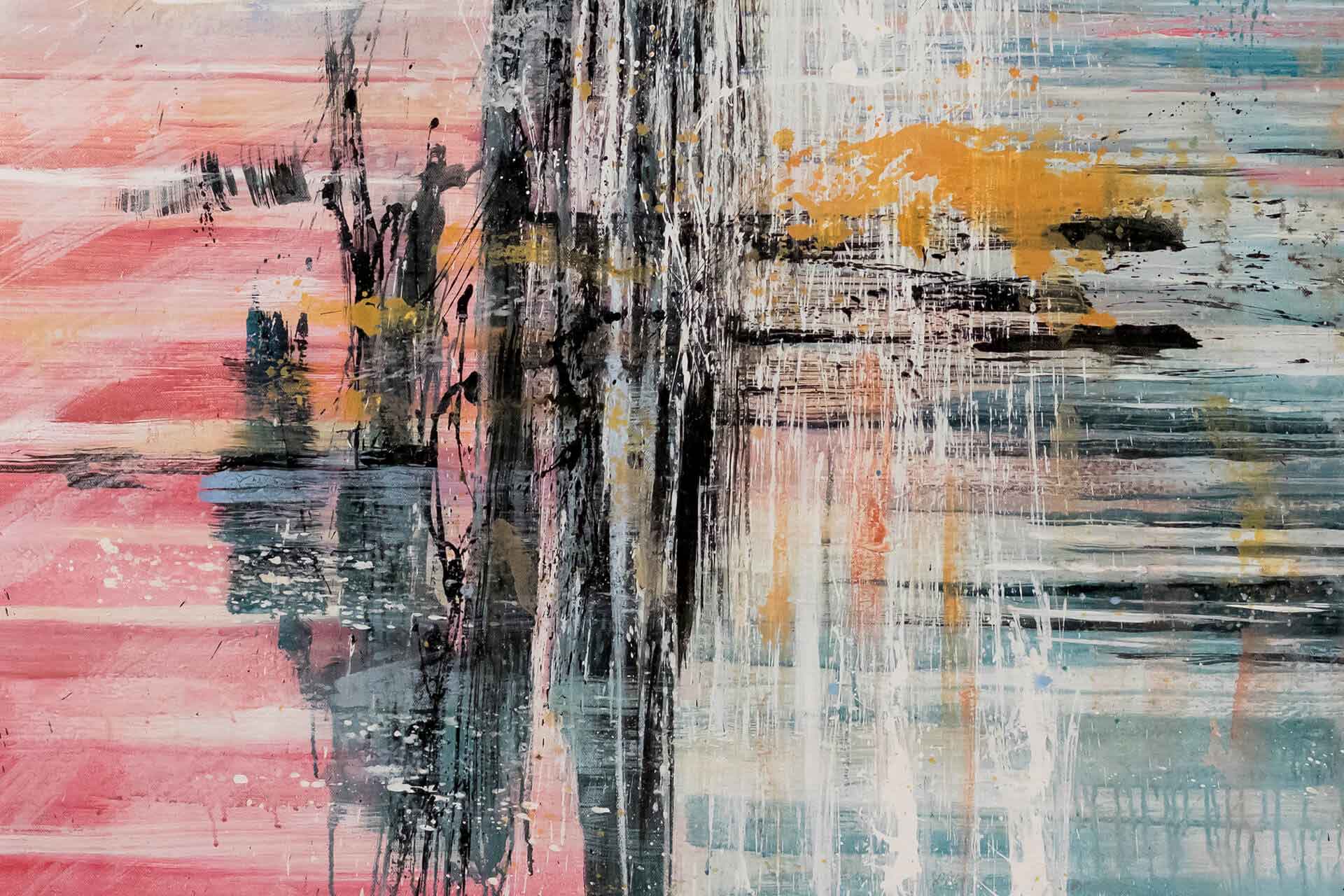 Il quadro a olio di grande formato 'Quiet Magic' è stato dipinto a mano. Grazie alla stesura densa del colore si può distinguere ogni pennellata e anche i bordi sono dipinti.