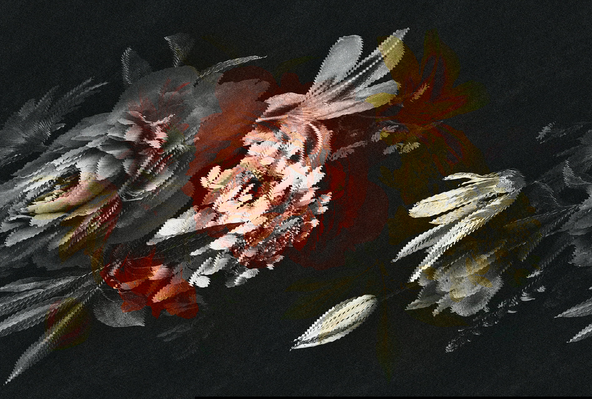 ...Di più sull'artistaVollendete Schönheit vermittelt die florale Motivik auf der Design Fototapete 'Drama Queen 1', auf der die Blüten ihre prächtigen Köpfe eindrucksvoll in Rot- und Weißtönen von dem schwarzen Hintergrund abzuheben wissen. In Ihrem Schlafzimmer umhüllt Sie die leicht glänzende Vliestapete und garantiert Ihnen einen erholsamen Schlaf.
